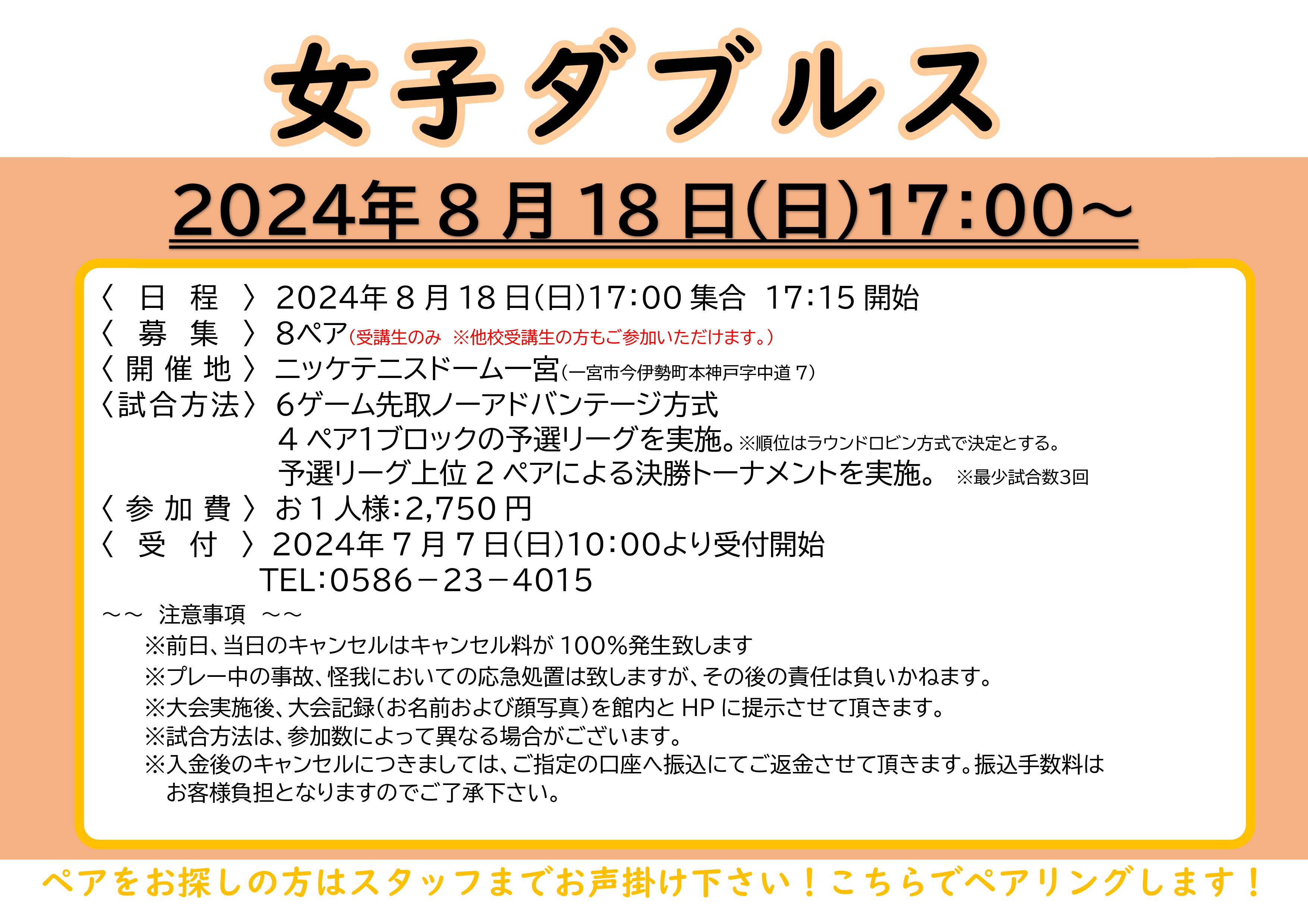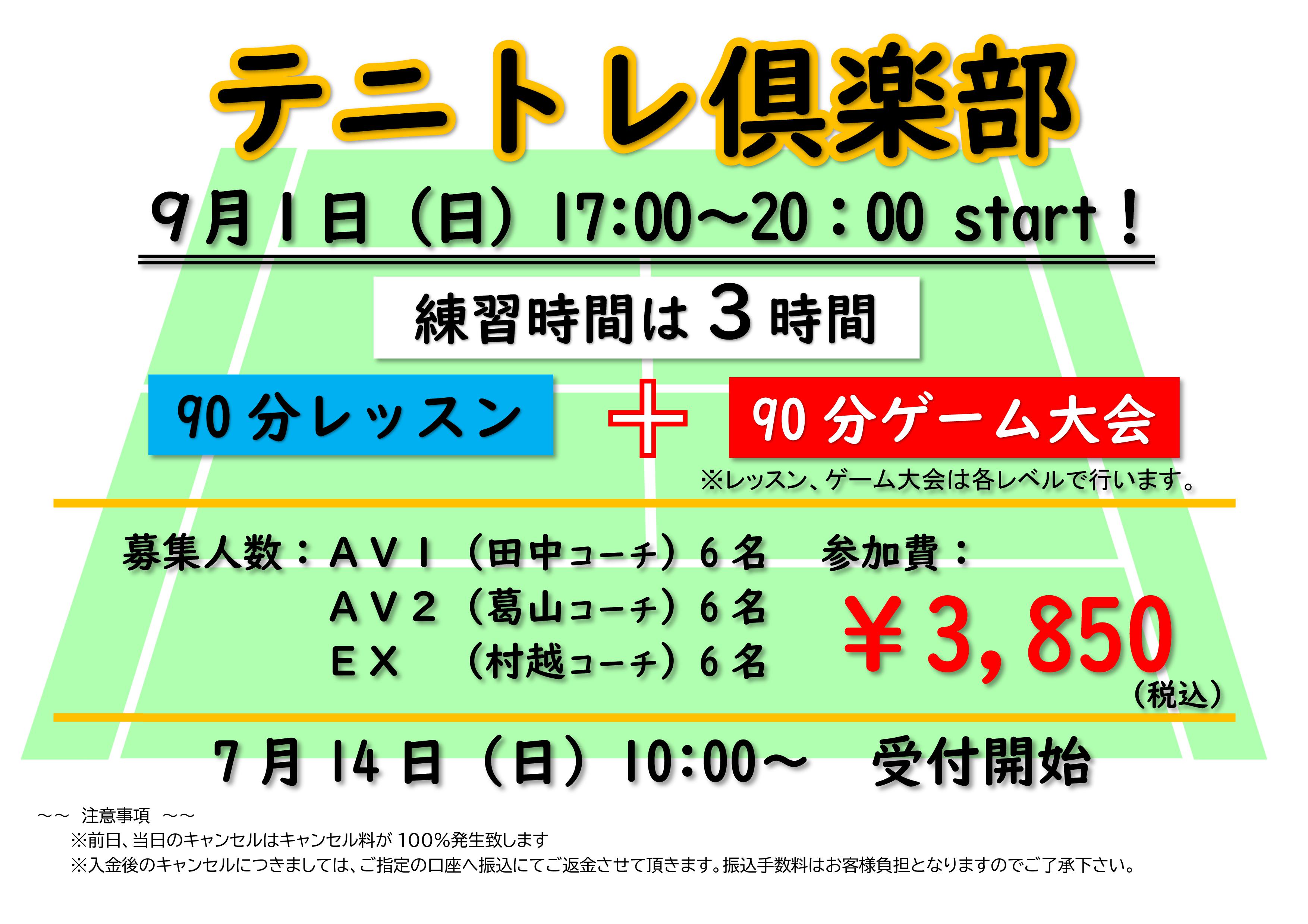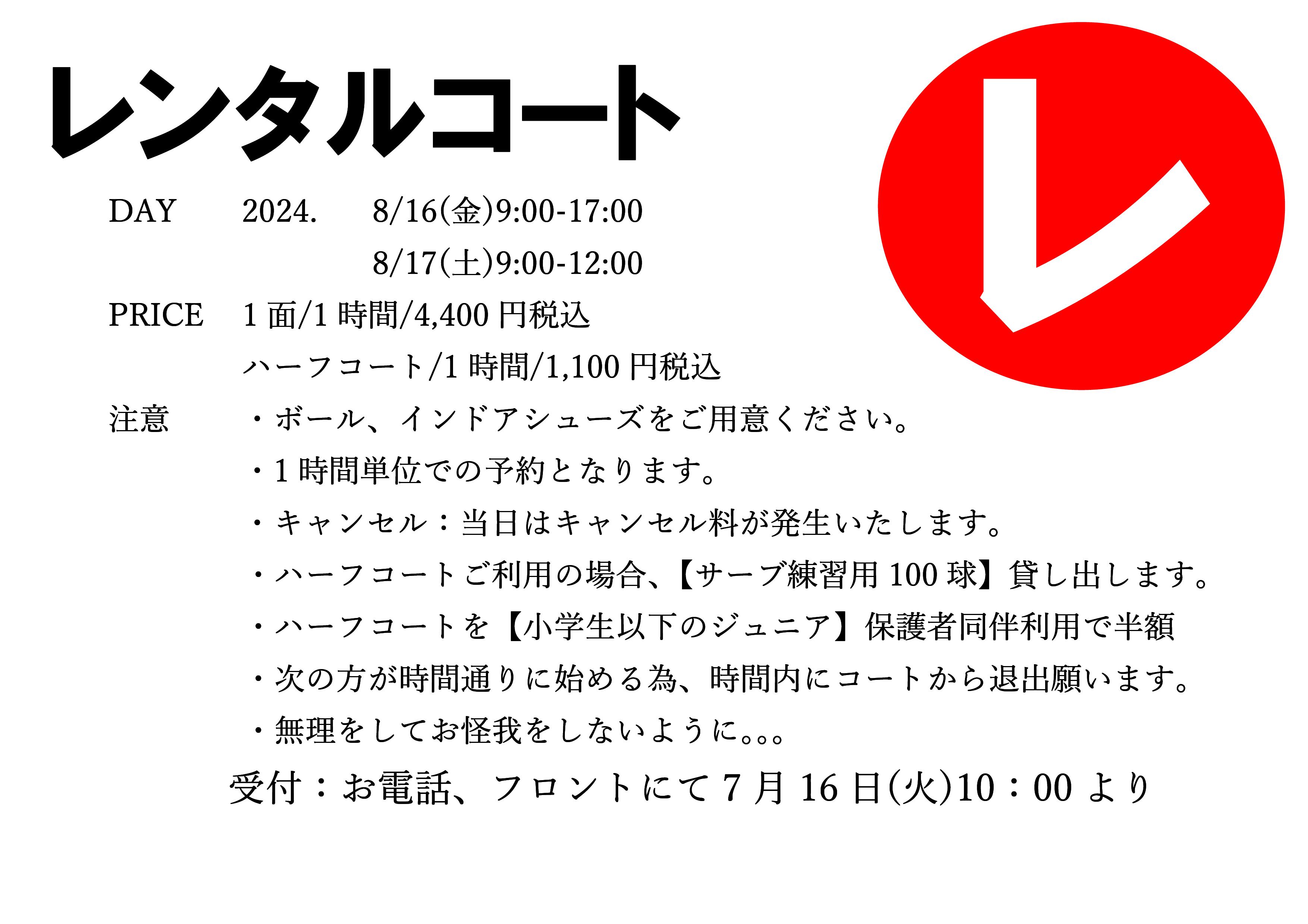 イベント&新着情報 8/16.17 休館日レンタルコート 2024年07月07日 8/17(土)コーヒーカップミックスダブルス ~アイスコーヒーの巻~ 2024年07月07日 9/1 テニトレ倶楽部 2024年07月06日 8/18 【男性限定】サンデーナイター練習会 2024年06月29日 8/18 女子ダブルス 2024年06月29日 1 / 2312345...1020...»最後 »