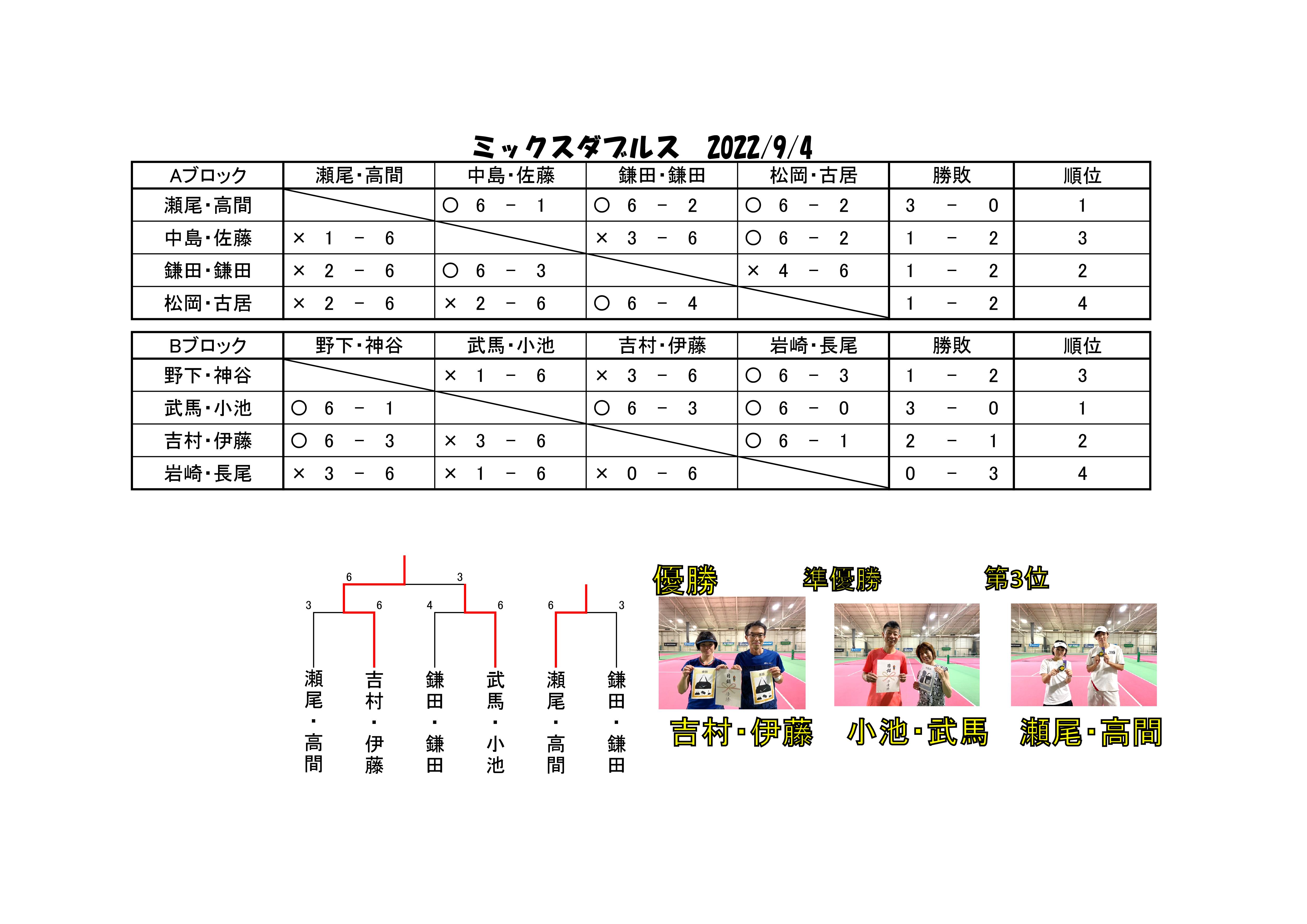 イベント&新着情報 ◆12/18 ミックスダブルス結果 2022年12月18日 お客様の声 2022年10月21日 ◆9/4 ミックスダブルス結果 2022年09月04日 ジュニア会員様の声 2022年06月30日 110期カスタマーボイス 2022年04月03日 5 / 6« 先頭«...23456»