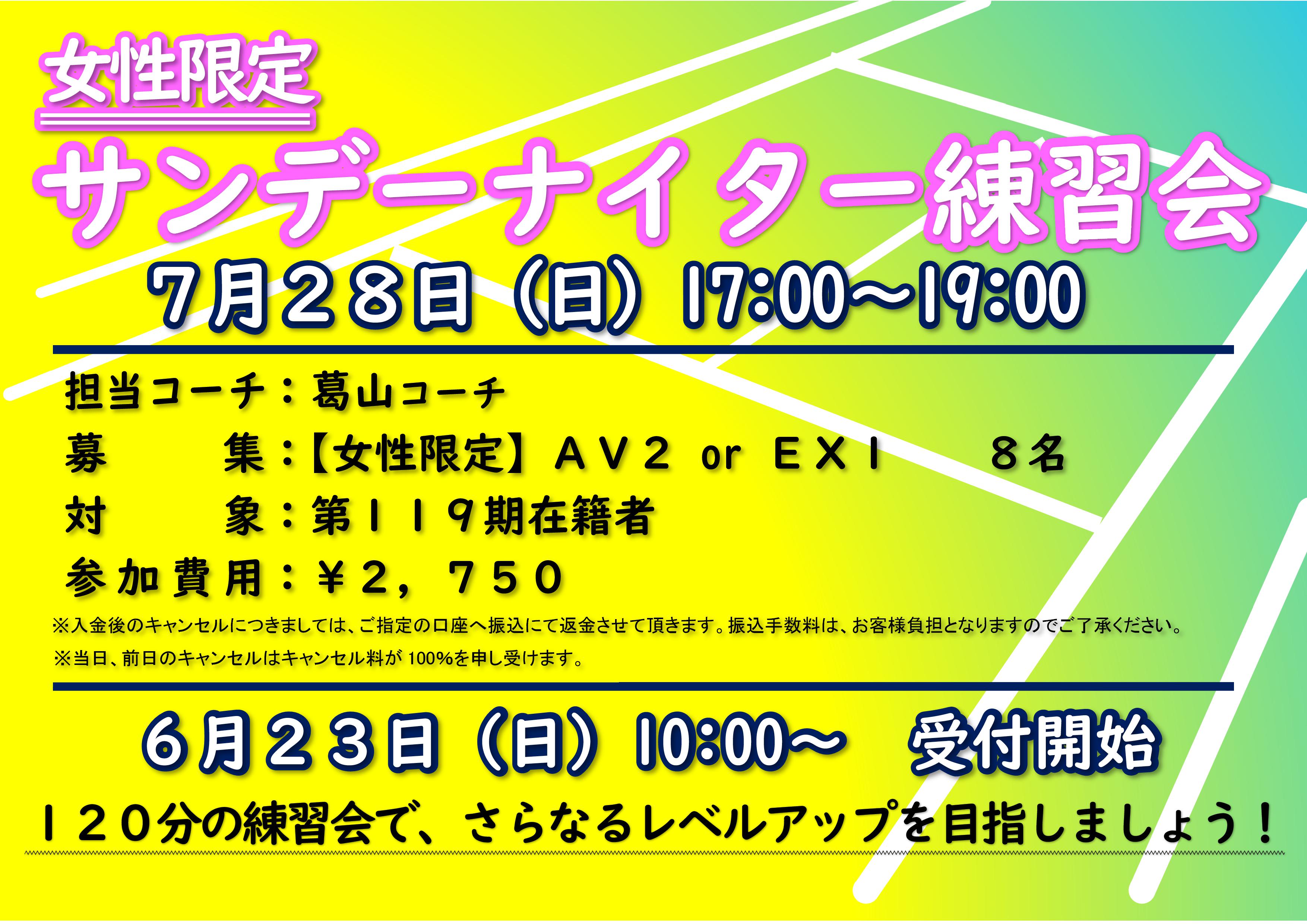 7/28 サンデーナイター練習会【女子限定】
