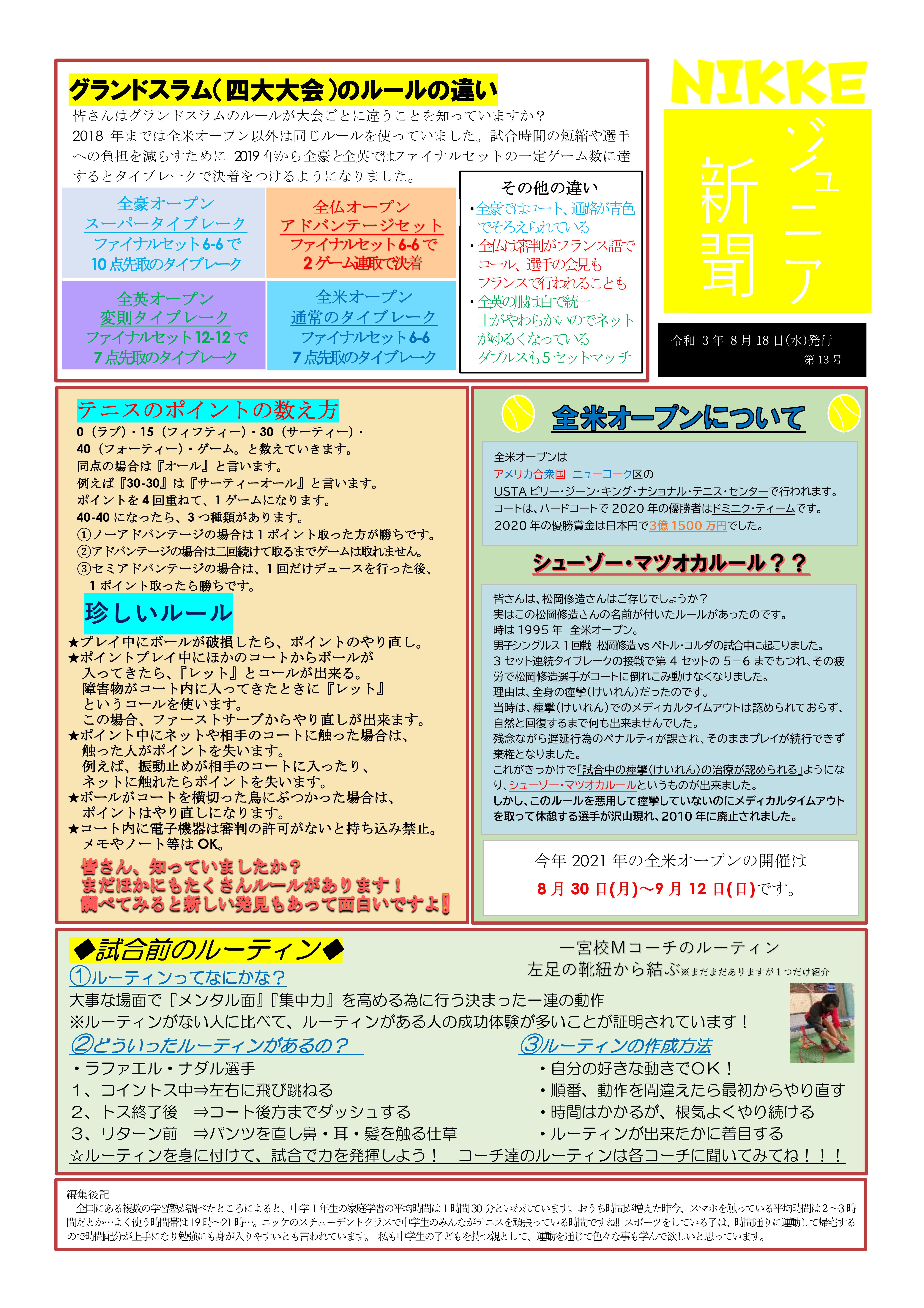 イベント&新着情報 ◆8/22 エンジョイダブルス結果 2021年08月23日 参加して頂きありがとうございました! 次回の参加もお待ちしています!! ジュニア新聞 第13号 2021年08月20日 ◆8/8 女子ダブルス(個人戦) 2021年08月08日 ◆7/25 男子ダブルス(個人の部) 2021年07月25日 ◆6/13 エキ1CUP女子ダブルス結果 2021年06月13日 20 / 23« 先頭«...10...1819202122...»最後 »